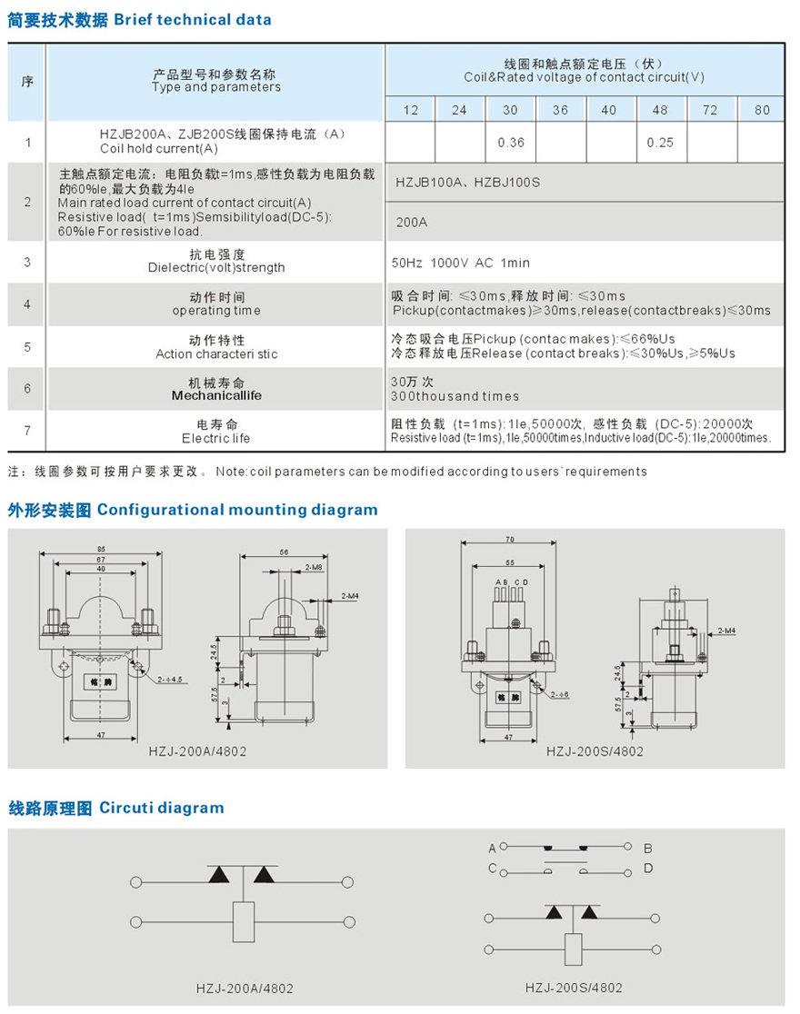 HZJ-200A/S/D-4801直流接触器