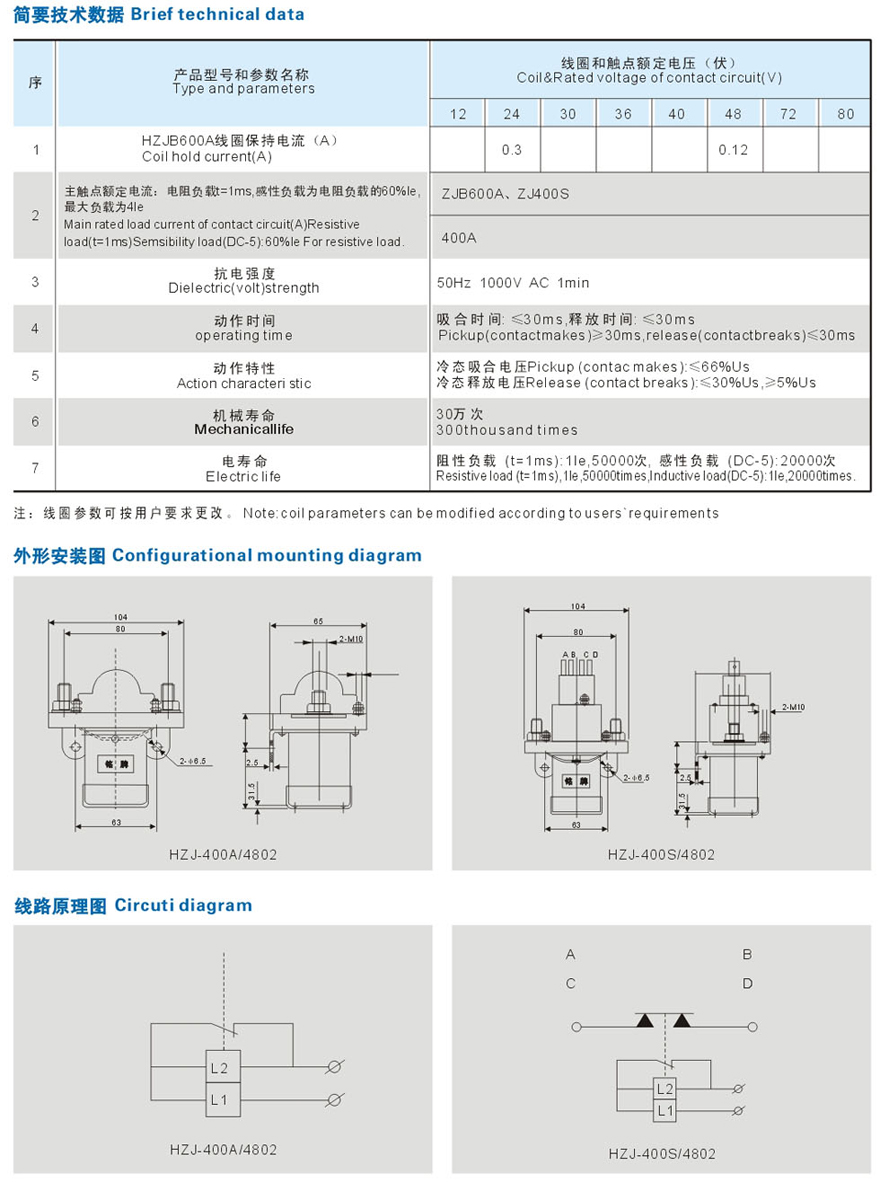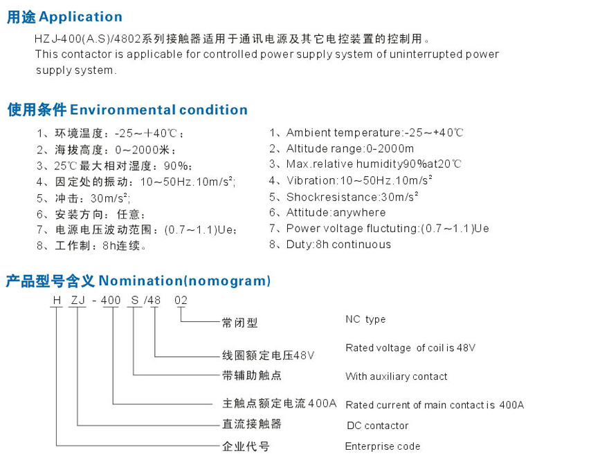 HZJ-400A/S/D-4801直流接触器