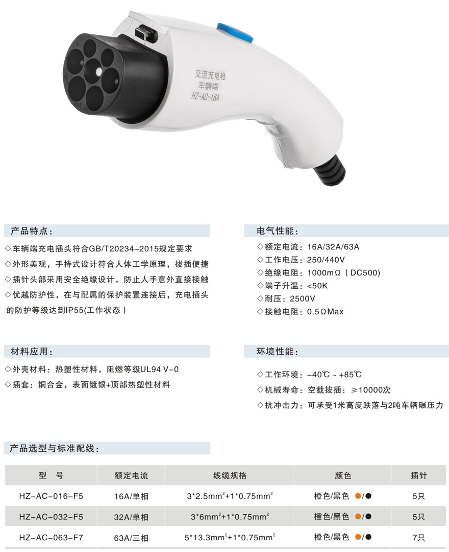 交流充电插头(车辆端/供电端)